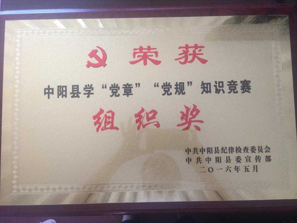 2016年5月荣获中阳县学“党章”“党规”知识竞赛组织奖